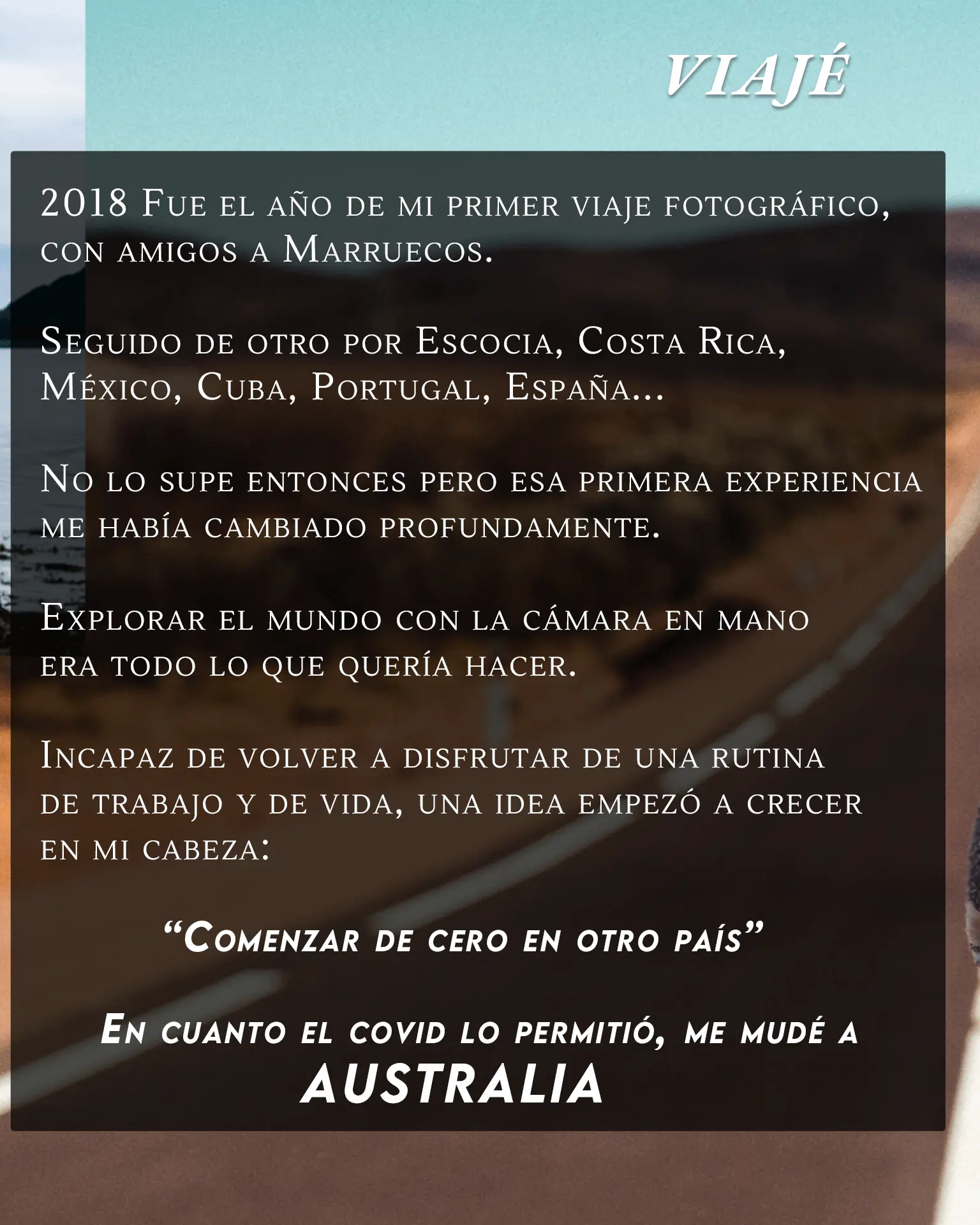 La fotografía, el storytelling y todo lo relacionado con el audiovisual me encanta y hablo de ello a todas horas en las plataformas personales. Si es algo que también te interesa puedes echarle un vistazo a mi cuenta personal o a mi página web como creador.